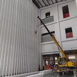 High-bay installation: Specialized equipment, fall protection, precision alignment, sequenced erection for heights 25m+.